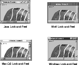 Note that the UI Delegate can be replaced at runtime. This enables Swing's pluggable look-and-feel (PLAF) system, illustrated in Figure 10-2.