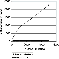 Why is this faster? The reason is twofold. First, because all the items are added to the model at once instead of one by one, only one event needs to be posted. This means that fewer event objects are created and fewer methods are called. Second, because fewer objects need to be notified of changes, less work is required. In general, the amount of work done equals the number of notifications multiplied by the number of listeners. Since the model is newly created, the number of listeners is zero, which means that no notifications are posted.
